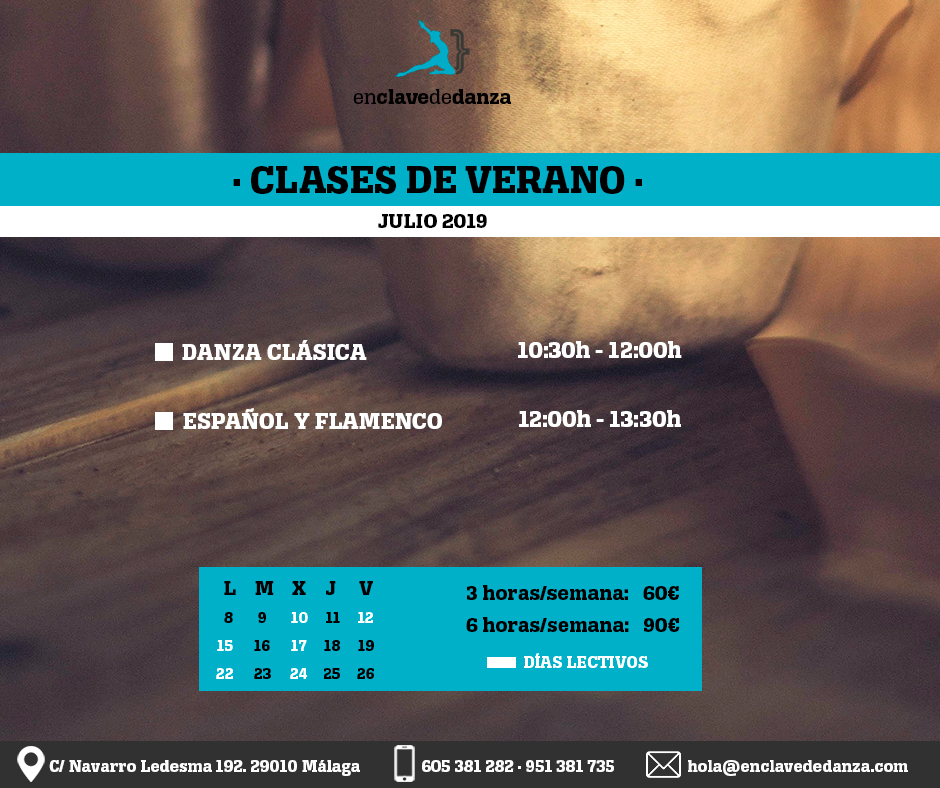 Mientras tanto, queremos recordaros que hoy se ha iniciado el curso de verano en la escuela con clases de danza clásica, español y flamenco, cuyos días lectivos serán el 10, 12, 15, 17, 22 y 24 de julio.