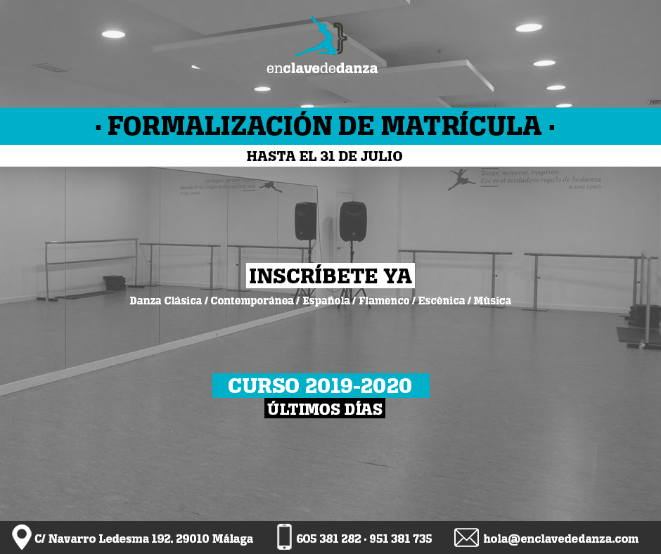 El pasado 15 de mayo se abrió el plazo de matrícula para el Curso 2019 – 2020, y esta vez os recordamos que tenéis hasta el 31 de julio para formalizarla.